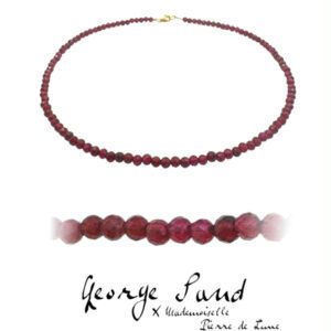 Si George Sand avait posé ses doigts sur ce collier de citrine, elle y aurait lu des histoires de lumière et de liberté. Chaque pierre dorée, chaude comme un rayon de soleil capturé dans le verre, aurait parlé à son esprit rebelle, à sa plume qui aimait traverser les frontières du convenu. Le collier, léger et pourtant vivant, semblait murmurer des secrets de voyage et d’audace, des éclats d’or qui dansaient au rythme des idées, des passions et des révoltes que Sand savait semer dans ses romans. On pouvait presque l’imaginer, ce collier autour de son cou, accrochant les regards, mais surtout les pensées, comme un reflet de son âme ardente et lumineuse.