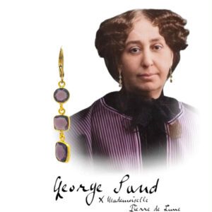 Ce collier de quartz incolore aurait trouvé en George Sand une alliée de transparence et de vérité. Ses pierres claires, presque diaphanes, ne cherchent ni éclat ni parure : elles révèlent, plutôt qu’elles ne cachent. Comme la plume de Sand, elles laissent passer la lumière brute, celle de la pensée sincère et du sentiment nu. Le quartz, pur et silencieux, porte en lui une clarté intérieure, un miroir d’âme et George Sand savait regarder dans ces miroirs sans détourner le regard. Autour de son cou, ce collier aurait semblé presque invisible, et pourtant vibrant, comme une présence d’air et de lucidité, un hommage à sa quête d’authenticité et de lumière intérieure.