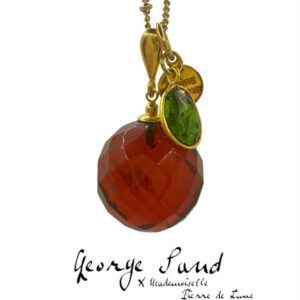 Ce collier de grenat semble battre au même rythme que le cœur de George Sand ardent, généreux, indomptable. Ses pierres rouges, profondes comme le vin et la terre, portent la ferveur d’une femme qui a aimé sans mesure et écrit sans peur. Le grenat, pierre de feu et de courage, lui ressemble : il ne cherche pas à plaire, il brûle, il affirme. Autour de son cou, il aurait scintillé comme une signature un serment de passion et de liberté. Dans chaque éclat, on devine la chaleur des nuits d’écriture, le tumulte des émotions, la braise d’une âme qui refusait le silence. Ce collier n’est pas un ornement : c’est une flamme, celle de George Sand.
