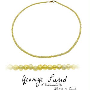 Ces boucles d’oreilles, où la douceur nacrée du blanc s’unit à la clarté solaire du verre jaune, semblent avoir été pensées pour George Sand elle-même. La nacre, apaisante et lumineuse, reflète sa tendresse naturelle, cette lumière discrète qu’elle portait en elle et qu’elle déposait dans chacun de ses gestes. Le verre jaune, éclatant et vif, évoque sa vitalité, son esprit libre, la chaleur dorée de ses étés à Nohant où chaque rayon de soleil devenait un poème.