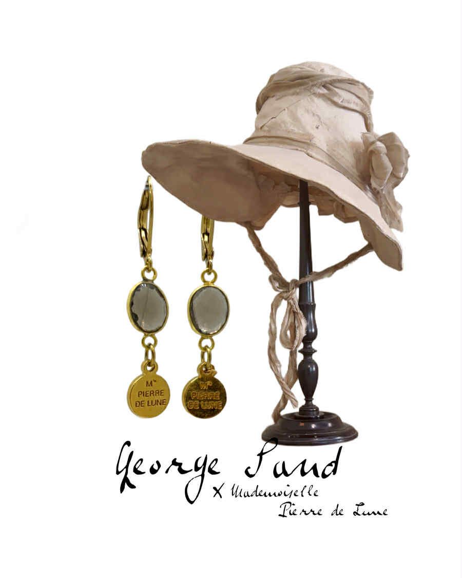 Dans les réserves du domaine de George Sand repose un délicat chapeau en satin, témoin raffiné de l’élégance des années 1830. Ses volumes subtils et sa matière soyeuse ont inspiré la création de boucles d’oreilles uniques. Une pampille ronde Mademoiselle Pierre de Lune, douce comme un éclat nocturne, y dialogue avec deux cabochons ovales de quartz fumé, facettés pour capter la lumière. À l’image de ce couvre-chef romantique, la composition conjugue délicatesse et caractère, offrant une parure qui relie la grâce d’un accessoire d’époque à l’élégance intemporelle d’aujourd’hui.